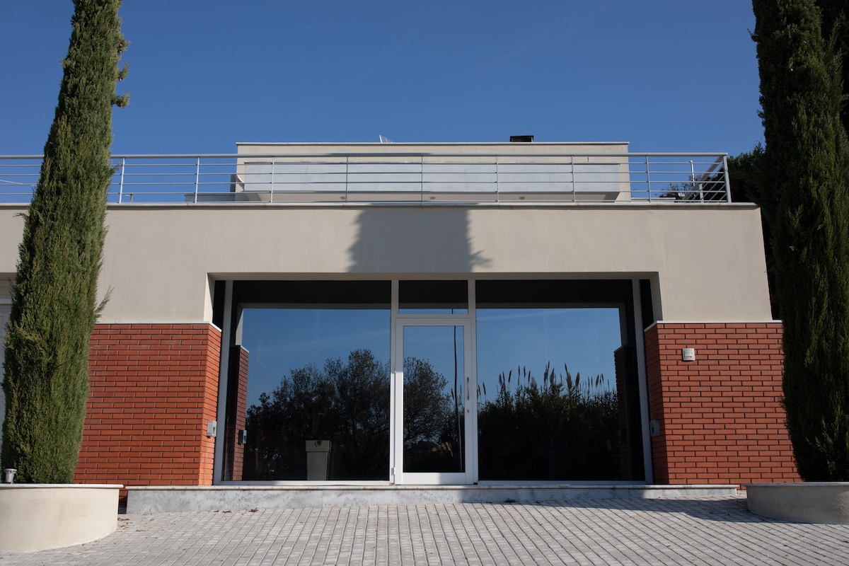 Our unique apartment is located on the second floor of a dreamy house in Epanomi. It is a 3' car ride from the beach, in a quiet neighborhood. You will enjoy the view of Olympus mountain, the sea and the sunset! A super comfy bed, a cozy sofa bed for two, a beautifully designed space with a jacuzzi, a huge balcony, an amazing garden and barbecue, safe parking, are some of the amenities. Epanomi is very closed to Thessaliniki and Makedonia airport!