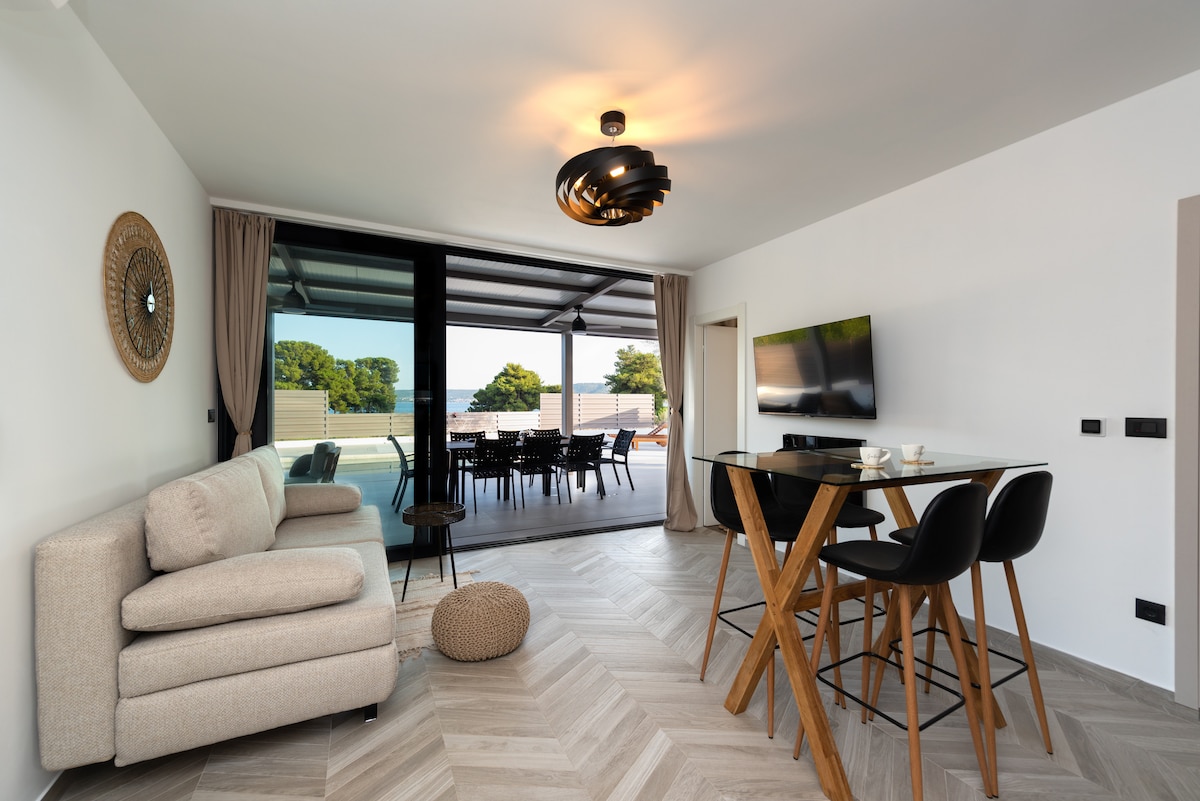 Be one of the first to enjoy this brand - new place set on a unique location directly on the beach. Enjoy the luxury interior in a modern house where you will feel the real essence of Mediterranean. Leave your pandemic stress behind and just enjoy the smell and sound of the sea in a complete privacy. Pamper yourself with vacation you know you deserve..