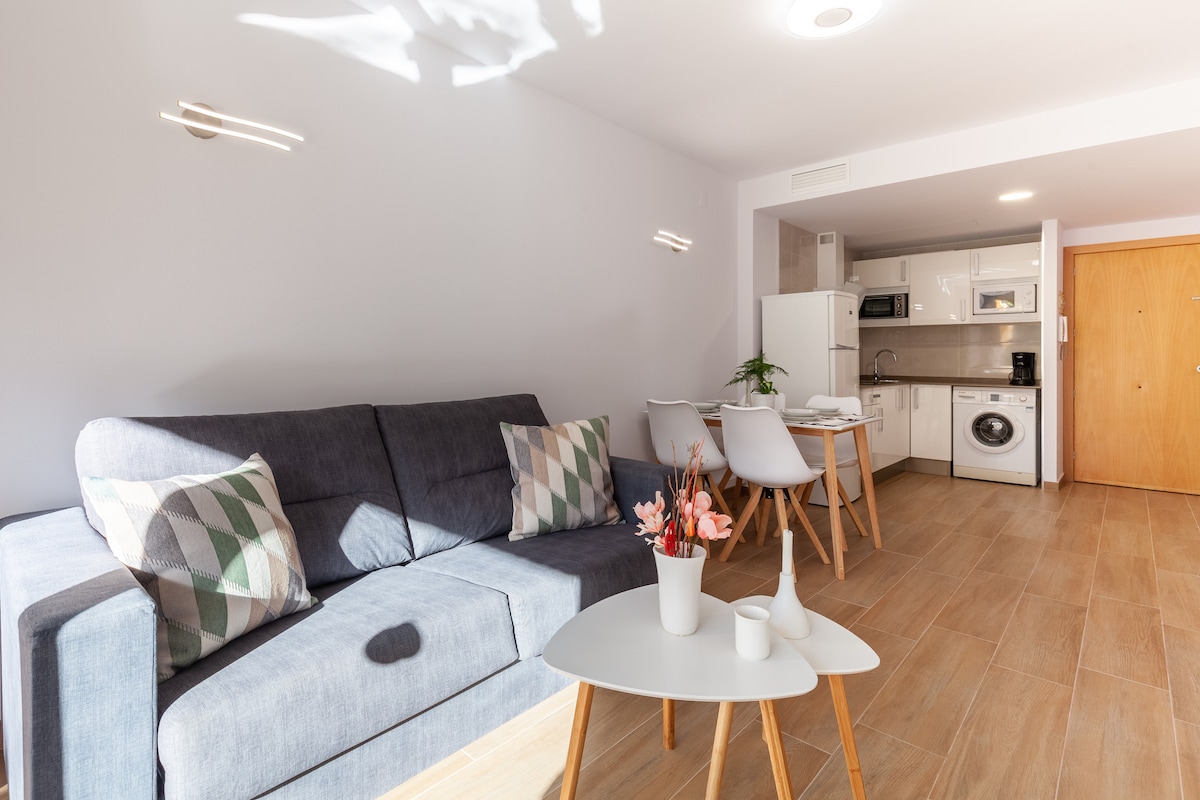 BRAND NEW!! Enjoy a completely renovated space in the center of Tarragona. Housing composed of: living-dining room with balcony fully equipped separate kitchen 1 bathroom with rain effect shower 1 Bedroom with two 90cm beds 1 Master bedroom with bathroom en suite and JACUZZI The accommodation has two entrances, one of them through the stairs and the other through the elevator that leaves you directly in the hall of the home without having to leave the elevator itself.