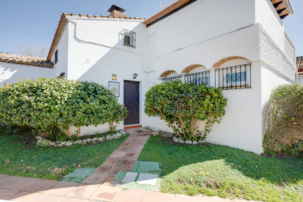 A fantastic 3-bedroomed villa, plenty of outdoor space, a few meters from the beach enjoying lovely sea views, Casa Maura has the charm of an Andalusian home, fully equipped for contemporary living. The Bahia Dorada heritage community is known for lush gardens and its five superb swimming pools. With direct access to the coastal path, Estepona and La Duquesa are in reasonable walking distance. There is free parking next to the villa, the supermarket and shops are just five minutes’ drive away.