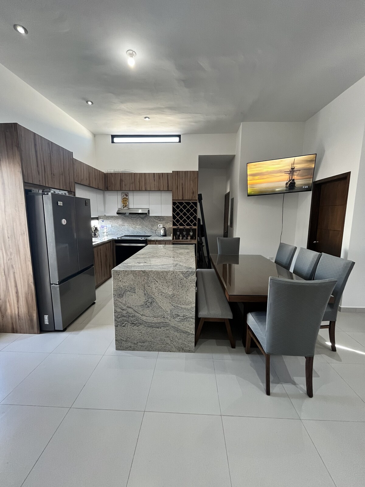 Beachfront home with private pool and direct private beach access. The home is inside a small gated community with security guard 24/7 Private Pool with Heater (Upon request with extra fee) Inside the community there is a shared area with pool, tennis and pickle ball court plus a Basketball/soccer concrete court. Very calm residential area