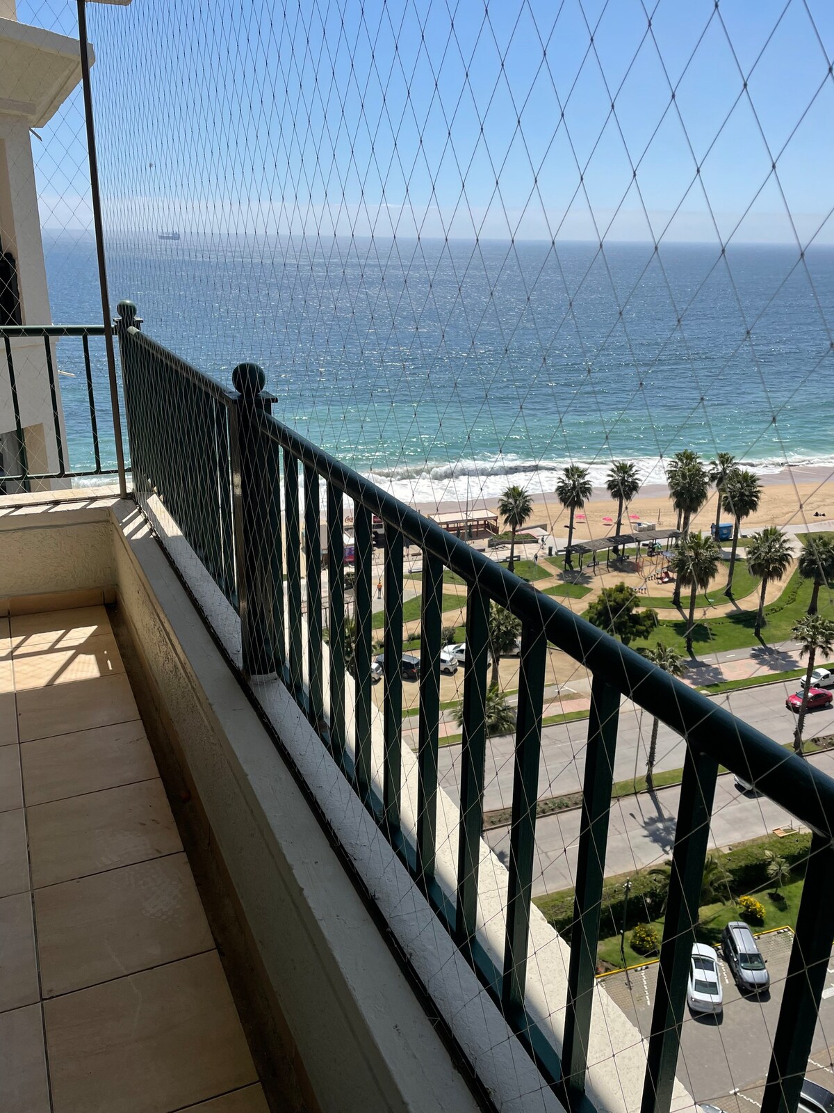 - Apartment with an unobstructed view of the beach and the sea, beachfront, 21st floor - In front of the Vergara pier - Private parking, 2 smart TVs, and Wi-Fi - For 4 people, 2 bedrooms; both with a full bed - Two full bathrooms - A spacious living room, terrace overlooking the waterfront and the sea - American kitchen - 24-hour concierge - Swimming pool, games, tennis court, laundry, gazebo - Pedestrian promenade, restaurants, pubs, supermarket, Marina Arauco mall, transportation, casino, craft fair