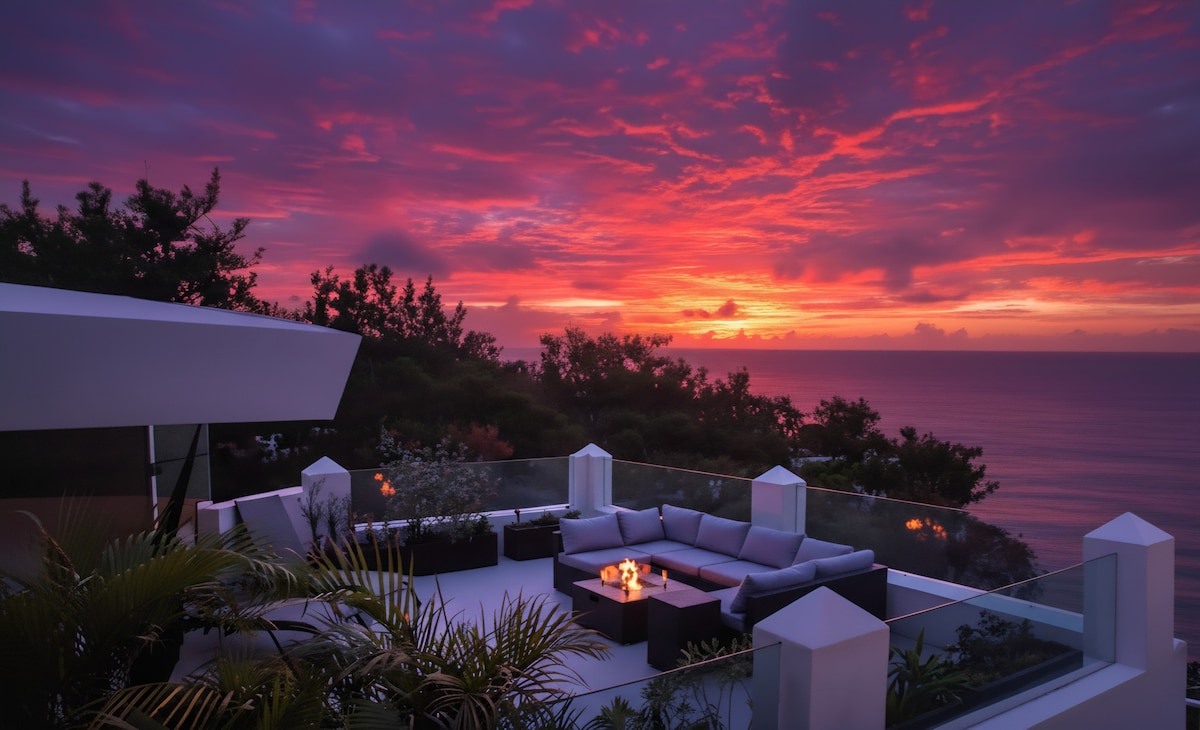 Luxury 5-bedroom Villa Loma is just 8 min from Puerto Vallarta’s vibrant Zona Romántica. Panoramic ocean views surround you from every level. The villa features 4 elegant en-suite bedrooms plus an extra TV room with 2 twin beds, total 6.5 bathrooms for total comfort. Relax on the main terrace with a heated pool and romantic firepit, or head to the rooftop jacuzzi for unforgettable sunset cocktails. Custom-made décor, spacious design, and modern amenities make this the perfect upscale retreat.