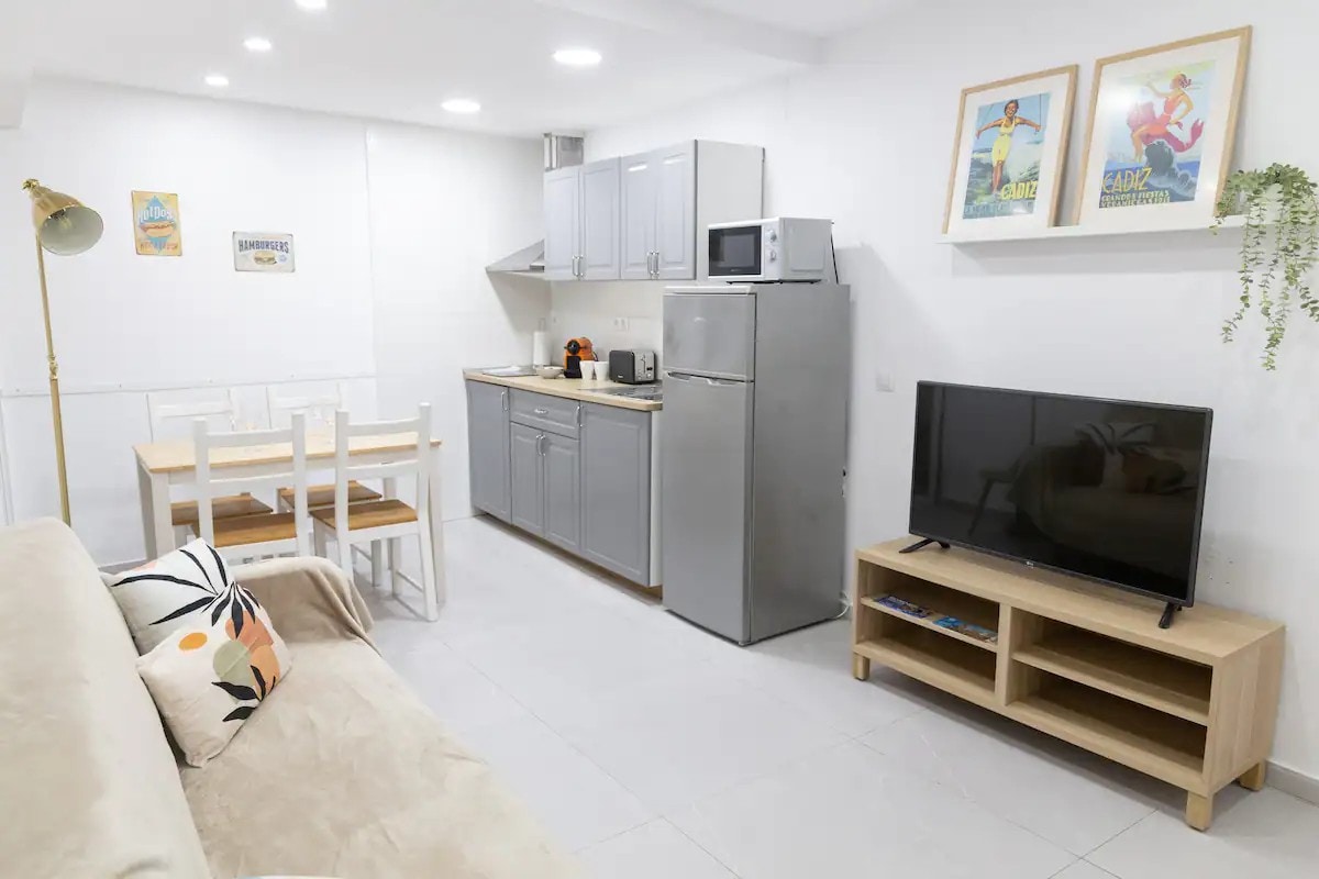 In the heart of Cádiz, a newly renovated apartment with all the amenities to rest, good bus connections, located very close to Plaza de España, first floor with views to the interior of the property, very quiet property where it ensures the tranquility of the neighbors as much as possible. La Caleta beach is a 15-minute walk away.