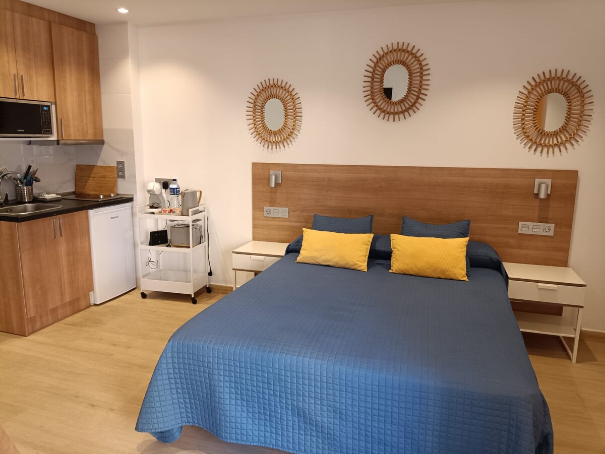 Recently refurbished studio, in the center of Torremolinos. Ideal for couples. Sunny, modern design, ideally clean and cosy. Studio flat with sofa bed (140cm), bathroom, kitchen, washing machine, air conditioning, wardrobe, TV, WiFi. 1st Floor. Public transport by hand.
