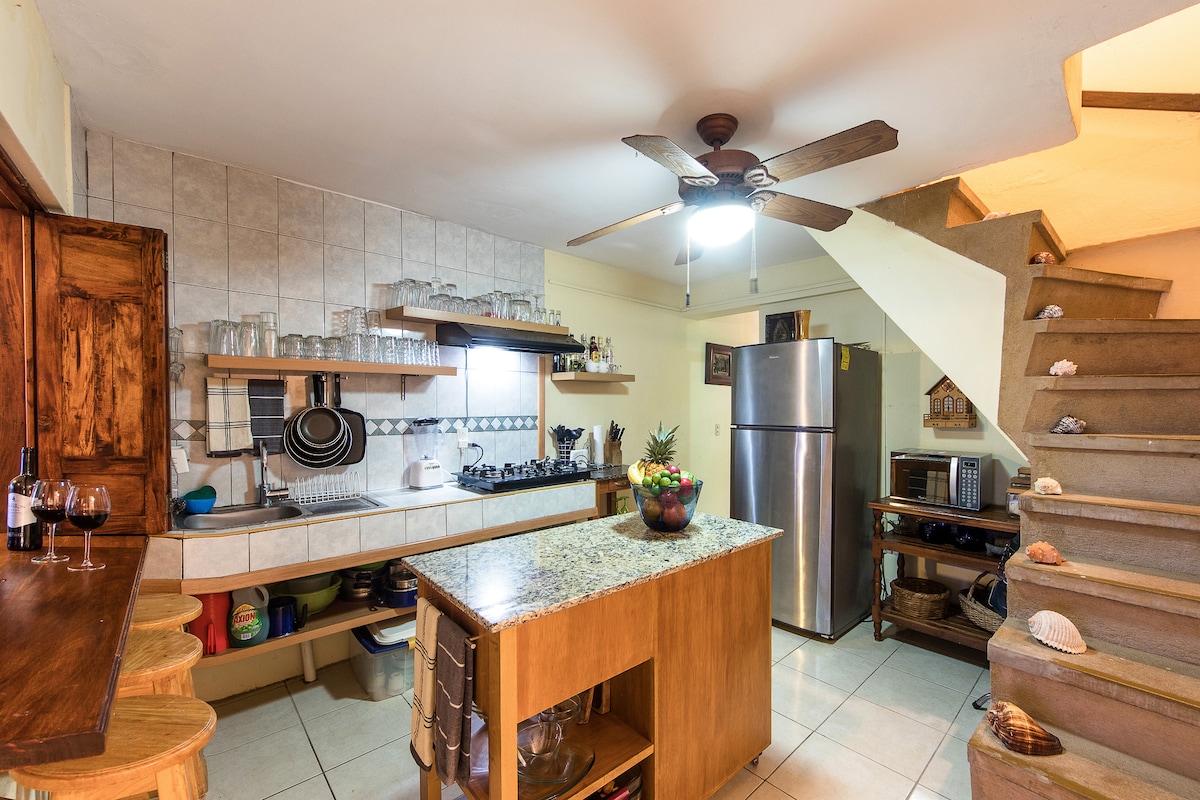 Entire house, two blocks from the beach, equipped kitchen, dining room, living room, 2 bedrooms located on the top floor, the master bedroom with private bathroom and king size bed, living room, 2 full bathrooms in common areas, patio and garage for 1 car. In the house's surroundings you'll find everything from a Japanese restaurant to a diner for having some delicious chilaquiles for breakfast. The supermarket is steps from the house, public transportation stops at the corner, and taxis are two blocks away.