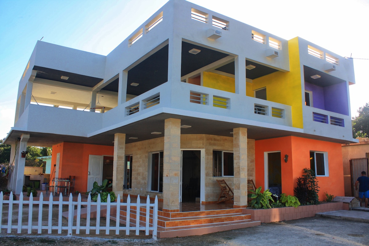 The House is located right in front of the Hotel Playa Larga. The room is equipped with everything you need to accommodate 5 people, has 2 bedrooms and 1 staff, air-conditioned, with private bathroom, 2 safes, minibar, the beach is only 2 minutes from our hostel is provided service, horseback riding, diving bike rental, snorkeling, excursions to the National Park and wifi at home in order everything you need for a good stay in our hostel