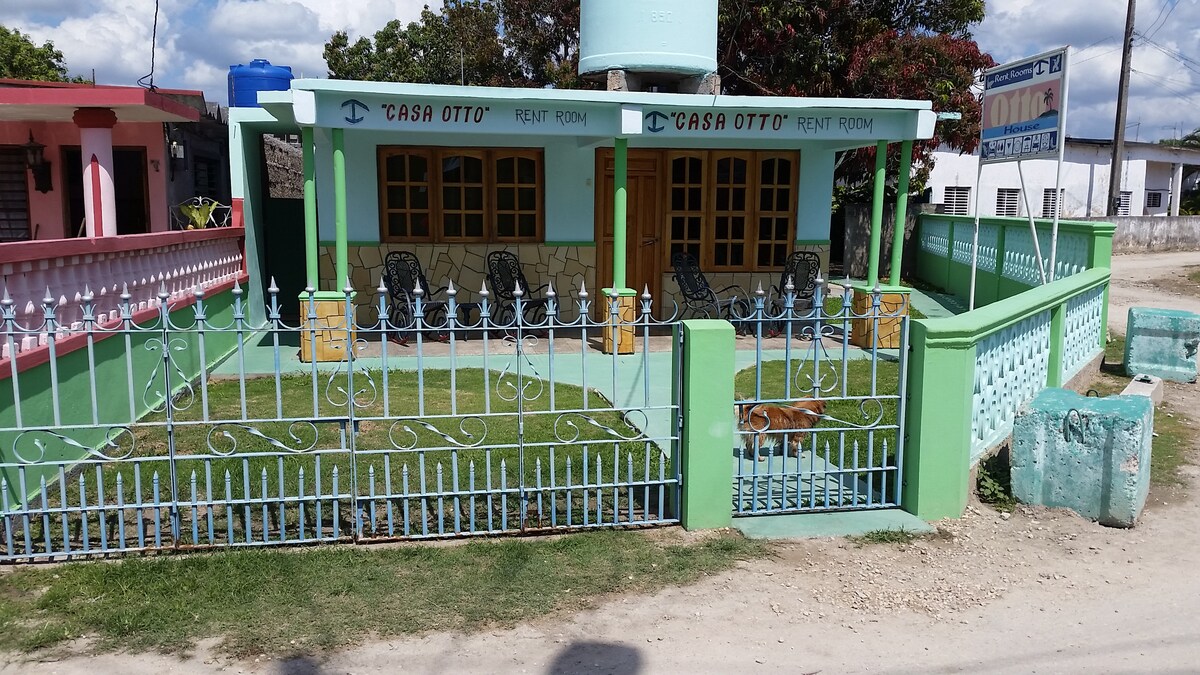 Room #1. Steps from the Sea. Free Wi-Fi. Private entrance with no architectural barriers. Spotless. Cozy and compact. ✓White sheets and towels. ✓Air conditioning. ✓Table fan with battery and lamp. ✓Wall fan. ✓Safe. ✓Hair dryer. ✓Clothes hanger. ✓Window with street view. Terrace overlooking the Bay of Pigs. Owner is a specialist in medical services. We use solar energy in our home. Part of a family agroecology project.