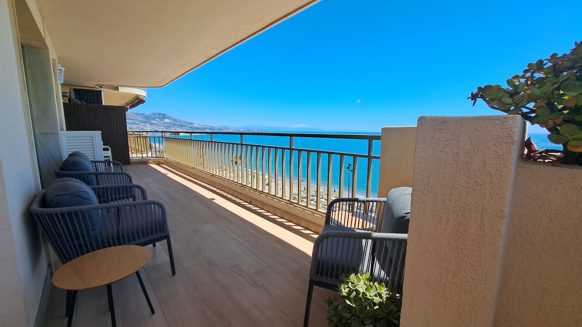 Beachfront apartment, newly renovated, with all the amenities to enjoy your vacation on the Costa del Sol. It has a swimming pool, garden, full kitchen, and two double bedrooms, one with a double bed and another with two single beds. Sofa bed in the living room for 2 more guests. Air conditioning throughout the apartment. Parking inside the premises. Restaurants, shopping mall, shops nearby, and downtown within a 10-minute walk.