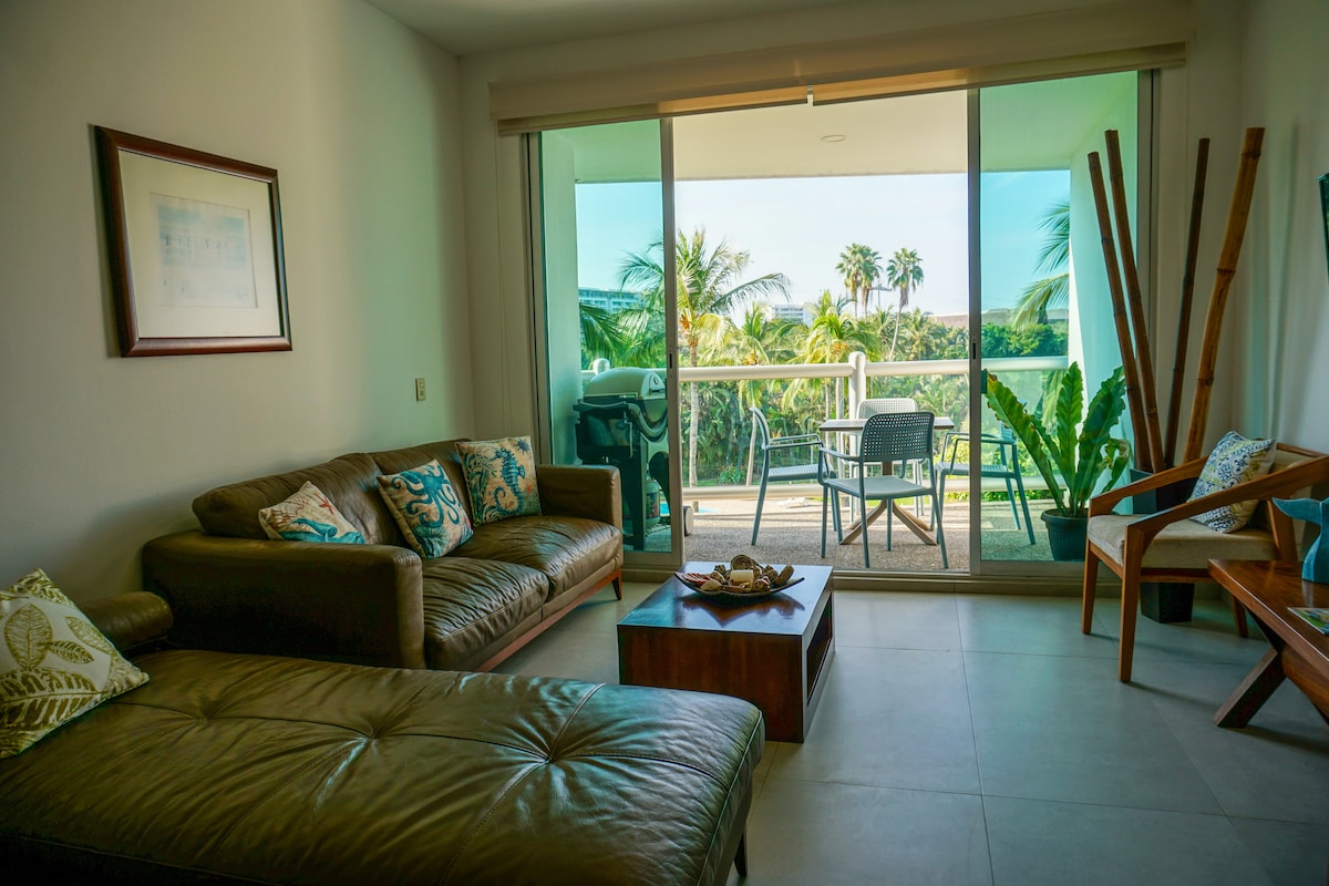 Beautiful and tastefully decorated condo in Nvo Vallarta. We have access to the facilities of one of the top 10 best hotels in Mexico, Vidanta - the Grand Mayan. You get all the Resort amenities at a fraction of the cost such as pools, gym, kid's area, waving pool, restaurants, golf course, tennis court and beach You always have the choice of enjoying the privacy of our buildings astonishing pool. We have a special golf fees in one of the finest courses in golf. NoteWe are 20min from the beach.