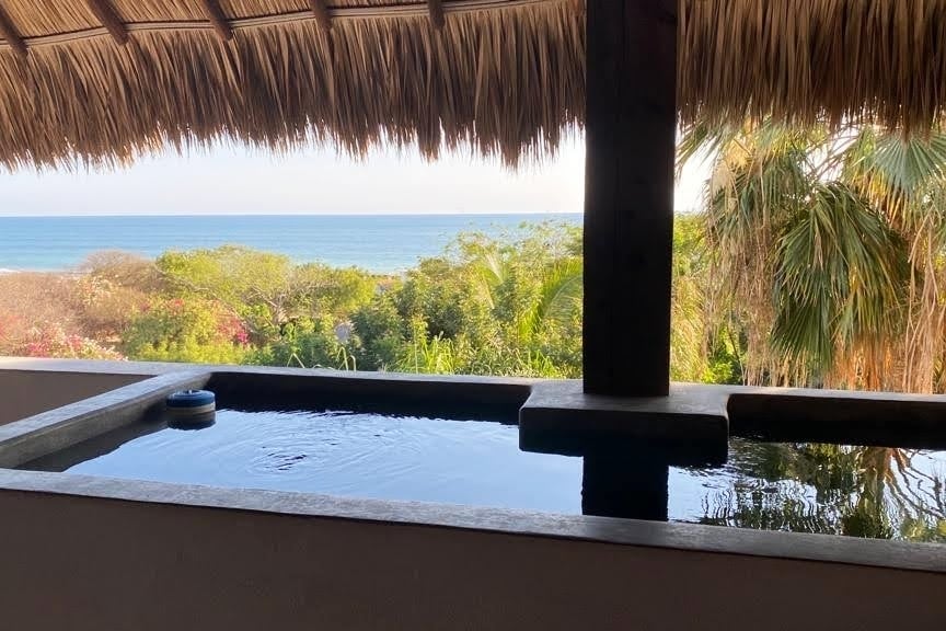 2 Room 2 Bath apartment, beach access, high speed wifi Starlink amazing open apartment best ocean view in Puerto Escondido Enjoy a gorgeus double height palapa roof fresh and airy. The nearby construction it's already finished Perfect place to relax two terrace-living rooms. Beach within the property, 2 outdoor pools and a heated (upon request) private pool inside the apartment Spectacular ocean views for nature lovers expect to see and hear tropical rainforest and ocean sounds during the night.