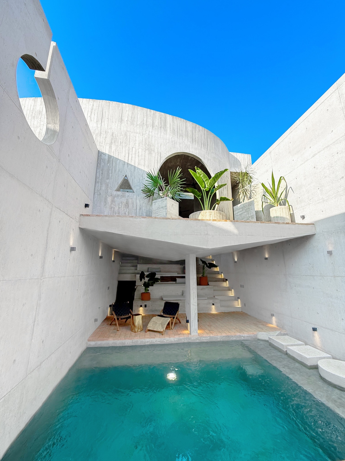 This AWARD WINNING HOUSE has been featured by AD MAGAZINE as one of the 10 top brutalist houses of 2024 , Just a six-minute walk from the beach in the hip La Punta neighborhood of Puerto Escondido sits CASA WO, a modern oasis and architectural marvel in the Mexican state of Oaxaca. CASA WO is much more than a luxury beach house, featuring a unique garden-roof and a sapphire blue private pool that blends seamlessly with the home’s contemporary and open-air layout.