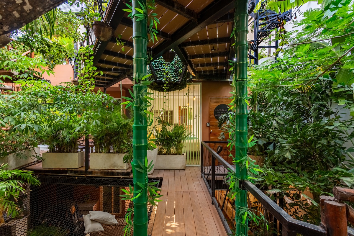Relájate en esta escapada única y tranquila.Te invitamos a descubrir Cenote Studio, un espacio exclusivo con cocina compacta, baño privado, lavadora/secadora, TV y conexión a fibra óptica de alta velocidad. Disfruta de un pequeño jardín privado para relajarte. A solo 50 metros, encontrarás un cenote natural y una piscina infinita. Ubicado en un entorno tranquilo, a 15 min en bicicleta de la 5ta Avenida. Transporte gratuito una vez al día al centro, electricidad incluida. ¡Tu refugio ideal !