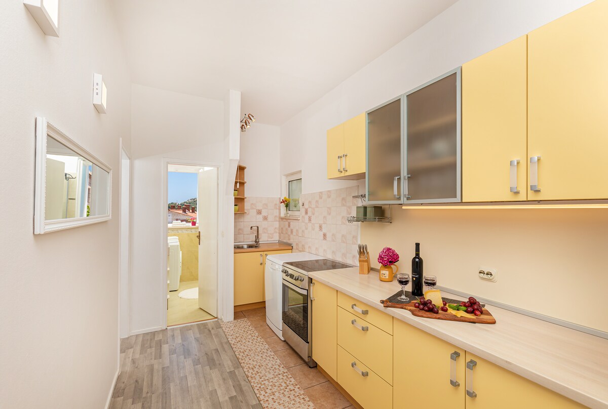 Modern 1st floor apartment fitted for 3 people and located in the heart off the Old Town of Dubrovnik, and includes one bedroom with double bed, fully- equipped kitchenette, bathroom, living room with sofa bed, AC, WiFi, TV, washing machine, sound proof windows, clean linens and towels, bus stop 2 minutes walking distance, close distance to bakery, bars, restaurants, beaches. Self check in with the lockbox, or check in with assistance of host upon request. Visit our recommendation what to visit