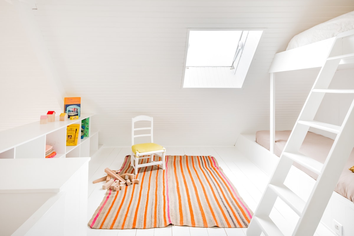 As lovers of Cap Sizun, we discovered this old fisherman's house and renovated it while keeping its strong identity. For this, we chose simple but warm materials. The lime walls are carefree neighbors with the linen or cotton curtains, while the wood floors creak just enough to signal the life that animates the house. Ideally located between Pointe du Raz and Pointe du Van and overlooking Baie des Trépassés.