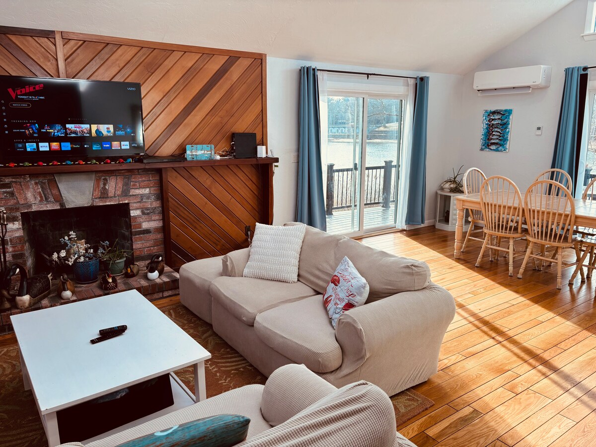 Welcome to our beautifully renovated pondfront retreat —Private Residence on a Pondfront Estate. The perfect peaceful getaway experience near Plymouth that comfortably sleeps six! This pet-friendly escape offers the best of relaxation and outdoor adventure all in one place. Enjoy kayaking, boating, and fishing right from your private beachfront along the pond. Spend your mornings walking the scenic trails with your dogs, and your evenings gathered around the fire pit under the stars.