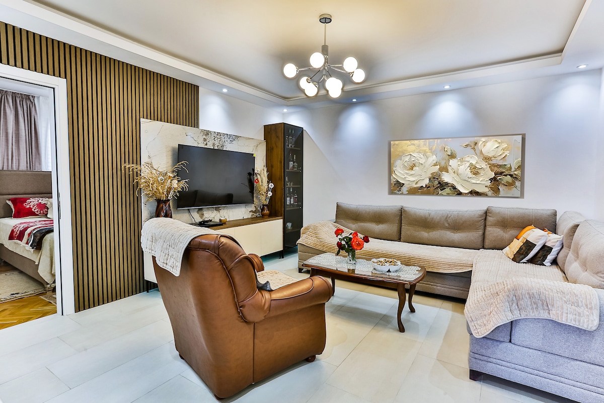 Located next to the famous Millennium bridge this modern furnished apartment will offer you more than you need to have an unforgettable experience in Podgorica. The 10-minute walk to the main square is an enjoyable and unique route across the river Moraca. The apartment is surrounded by public institutions: Court house, Ministry of Defense, University of Montenegro - Faculty of Law and Economics, UN building. Bars, restaurants, and pubs are located within a 3-minute walk distance.