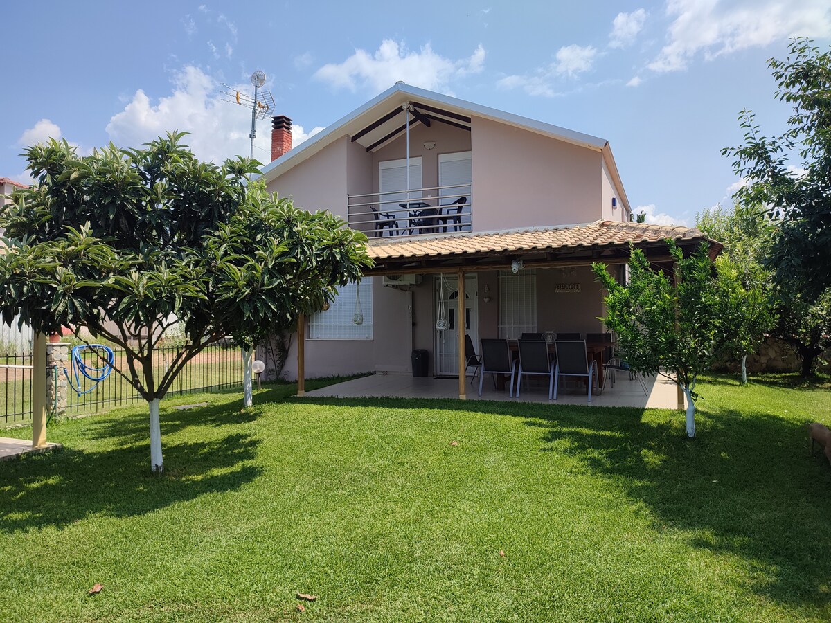 Relax and enjoy your vacation in this calm and elegant space. The house is 200 meters from the sea, 500 meters from super market/food courts and beach bar. It is ideal to relax in a fully renovated house but also to experience the nightlife 5 km away in Asprovalta with many options.
