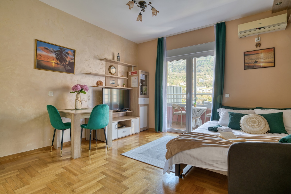 This beautiful and cozy studio with balcony and garage is perfect place for your stay in Budva. It has great location that offers everything you need. Shopping mall just across the street with big supermarket,bakery,cafes. For those who travel by bus,the main bus station is just 650 meters away. To get to the beach you need 20 minutes walk. Studio is fully furnished and equipped with everything needed for your comfortable stay. We are excited to meet you and be your host. ❤️
