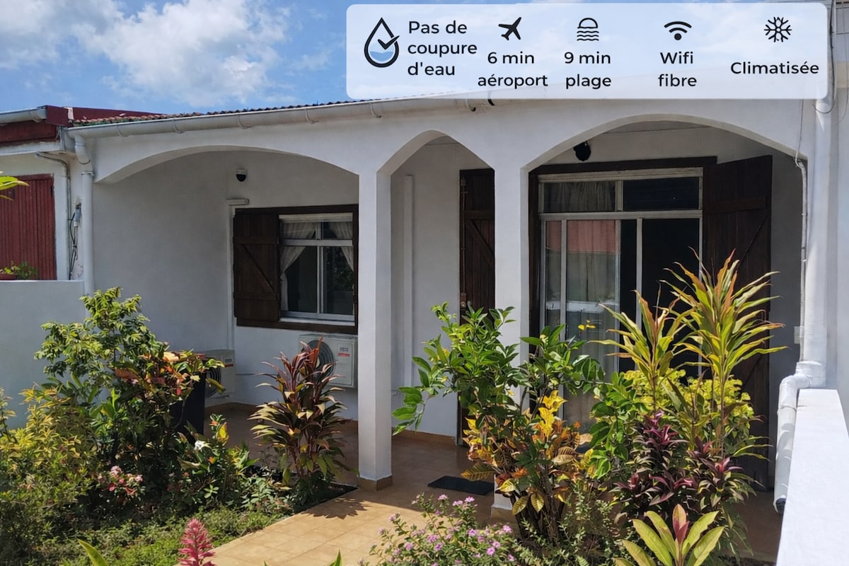 Charming Creole house with a private hot tub, terrace and flower-filled garden, in a quiet, pleasant residential area loved by travelers 🌴 Ideal for a couple, trio or small group—comfort, privacy and relaxation after the beach or a hike. 3 air-conditioned bedrooms, ultra-fast fiber (new install), no water cuts, free parking. 6 minutes from the airport and 9 minutes from the beaches—central and convenient for exploring all of Guadeloupe.