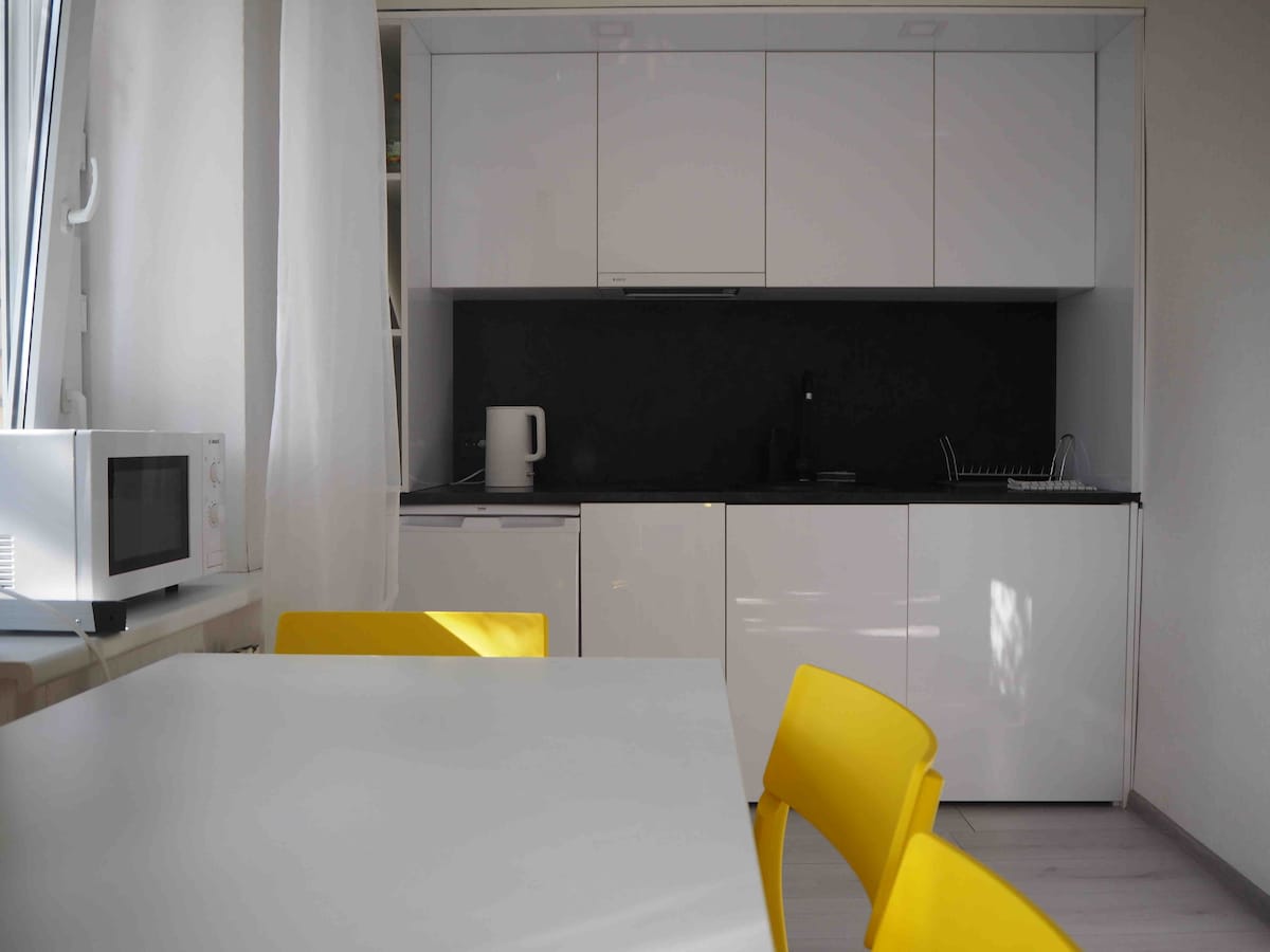Important: our apartment is located on the 3rd floor and there is no elevator. Visaginas is a beautiful city with wonderful lakes and forests. We like to spend time here so we bought and renovated an apartment so it is always pleasant to come here. We want to share this nice place with our guests: a forest that you (almost) can touch from the balcony and a lake that is only 7 minutes away on foot. And also a grocery store that is just beside the house (not very romantic but a convenient fact)
