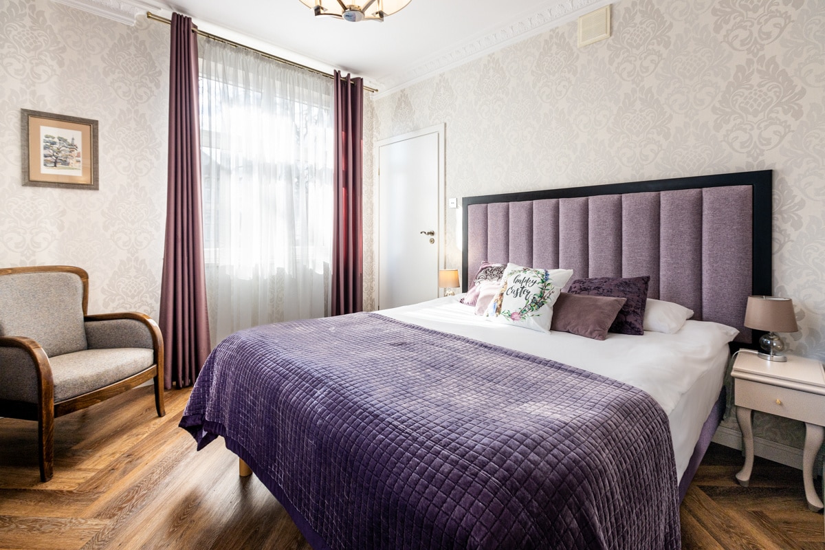 Standard double room with one 160 cm wide bed. Amenities in the facility: - Air-conditioned rooms and breakfast zone - WiFi - Elevator - The rooms are equipped with electronic locks - Taking care of the guest during their stay - Iron and ironing board - Free access to coffee, tea and homemade cake in the afternoons Additional services: Breakfast - 55 PLN/day/person Parking - PLN 50/day (earlier reservation required)