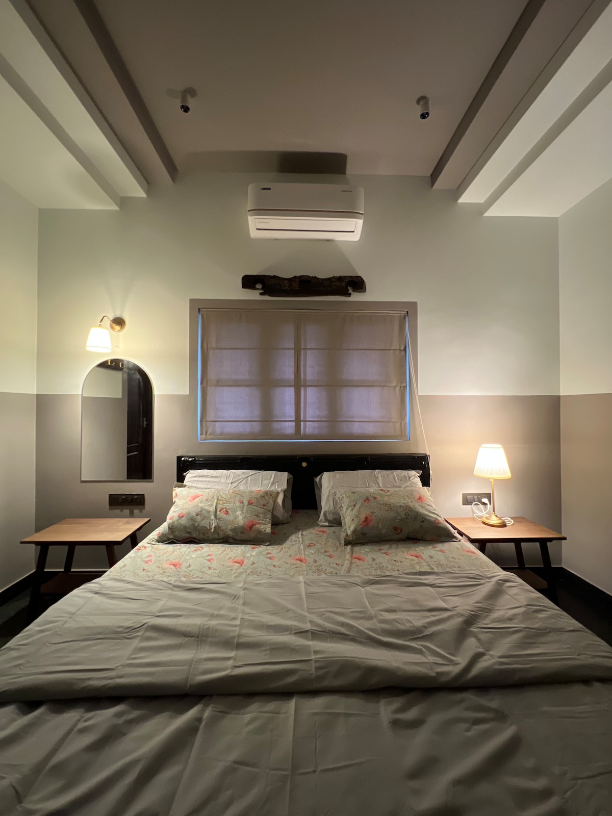 Located just 900m from Guruvayoor Temple and close to Mammiyoor Temple, this spacious 5BHK independent house is ideal for families or groups. Spread across two levels with separate kitchens and living rooms, it offers 5 AC bedrooms with attached bathrooms, high-speed Wi-Fi, inverter backup, CCTV (24/7), hot water, 2 TV, 2 Washing machines, 2 sofa cum beds and covered parking. Fully equipped for longer stays, it’s perfect for temple visits or family gatherings in a peaceful residential area.