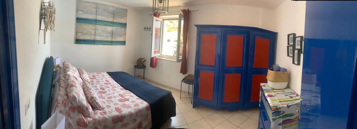 Apartment with two queen-size double bedrooms, a bathroom, kitchen and living room. Terrace overlooking the sea. Sunbathing area with shower also outside. Located in the center of the island in the Le Forna area. Easily accessible by bus. Once at the port, take any bus to Le Forna, get off at Via Sottocampo, cross the road and walk down the small road. About 300 m (2 minutes) on the left you will find a wooden gate. You are at home!!