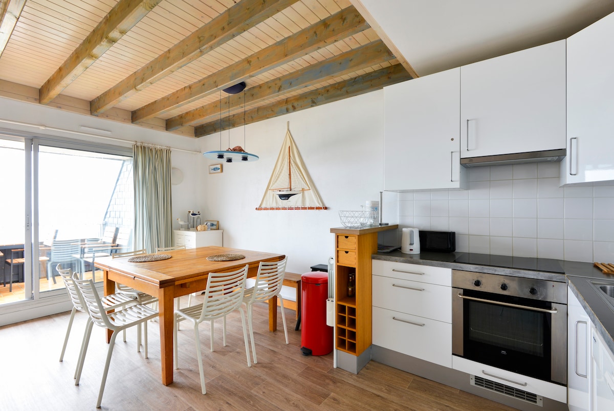 Favorite apartment for its exceptional view of the bay. 52 m2 duplex with 2 bedrooms and a mezzanine. Completely renovated with quality materials. WiFi access. The apartment is located in Quiberon on the quays of Port Haliguen. It is very quiet as there is no vehicle passage in front of the building. The marina restaurants are just a stone's throw away and the family-friendly Porigo beach is 200 m away. Ideal place for a beach vacation.