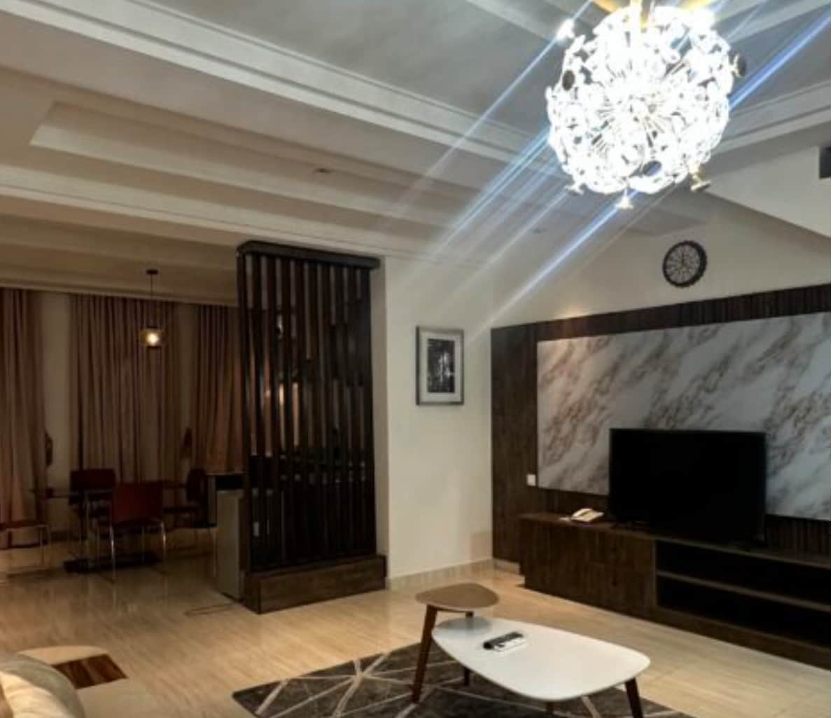 Step into a modern, fully furnished 2-bedroom apartment designed for comfort, convenience, and style. Living Room: A spacious, tastefully decorated living area featuring a comfortable leather sofa set, center table, flat-screen Smart TV, entertainment console, and air conditioning. Elegant curtains, a soft rug, and framed wall art complete the cozy ambiance ⚙️ Additional Features: Constant electricity or backup generator/inverter. High-speed Wi-Fi Washing machine Secured parking space