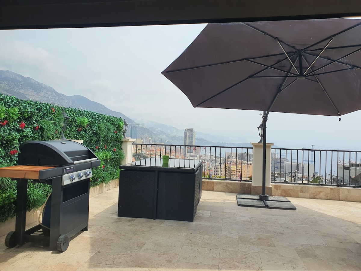 This spacious apartment of 110m2 including mezzanine has a beautiful view over Monaco to Ventimiglia, Italy. It is completely renovated and very cozily furnished. On the mezzanine, there are 2 sleeping areas with a separate shower room and sink. A bedroom on the ground floor with an en-suite shower and sink area. One TOILET with sink is located on the ground floor. Open kitchen and a garden on the land side. This location is NOT suitable for parties. Host lives at the house.