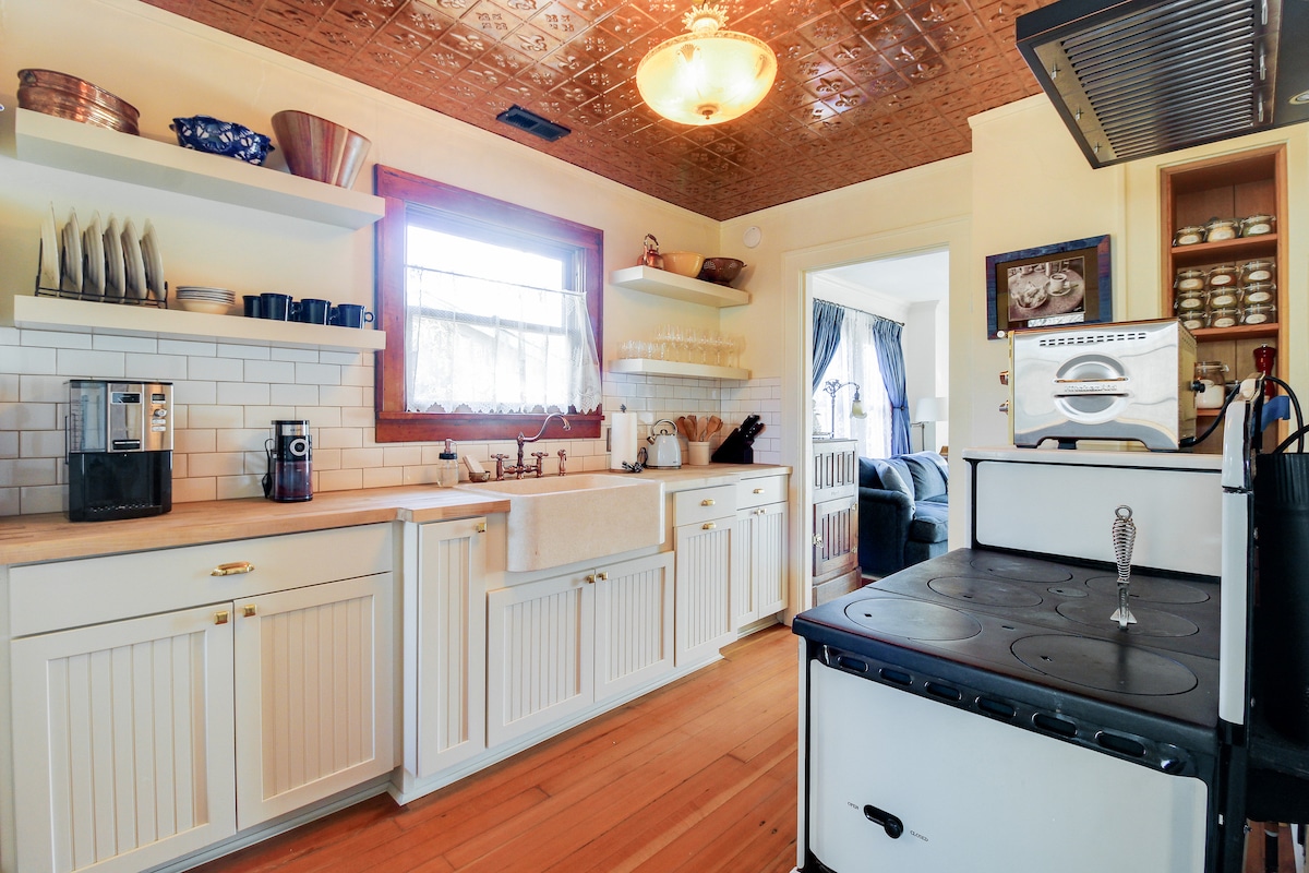 Located two blocks from the Springwater Corridor — a 21-mile paved trail for walkers and bikers — in the quiet neighborhood of Ardenwald, you’ll find The Hummingbird Cottage. This whimsical 1930s garden cottage is less than one mile from the charming streets of Sellwood, home to quaint coffee shops and restaurants, boutique shopping, and the iconic Sellwood Riverfront Park. The cottage features organic cotton sheets and goose down comforters in each room and a renovated spa-like main bathroom.