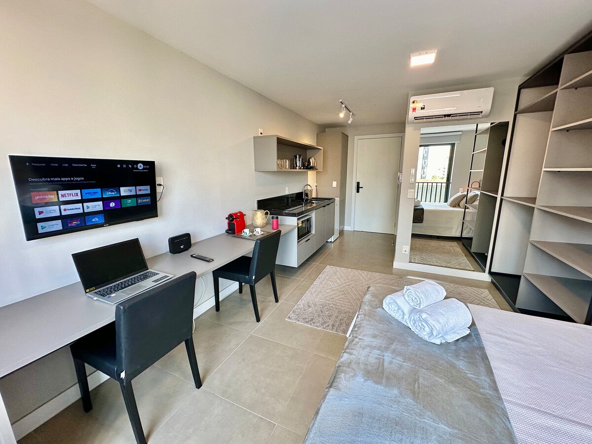 Welcome to a place that combines comfort, style and practicality in one of the best regions of the city. Ideal for those looking for a place surrounded by excellent restaurants, charming cafes and lively bars, all just a few steps away. ✨ The apartment is modern, cozy and designed to provide well-being, perfect for both short and long stays. Here, you will find a quiet environment to relax after a busy day or to work in comfort and inspiration.