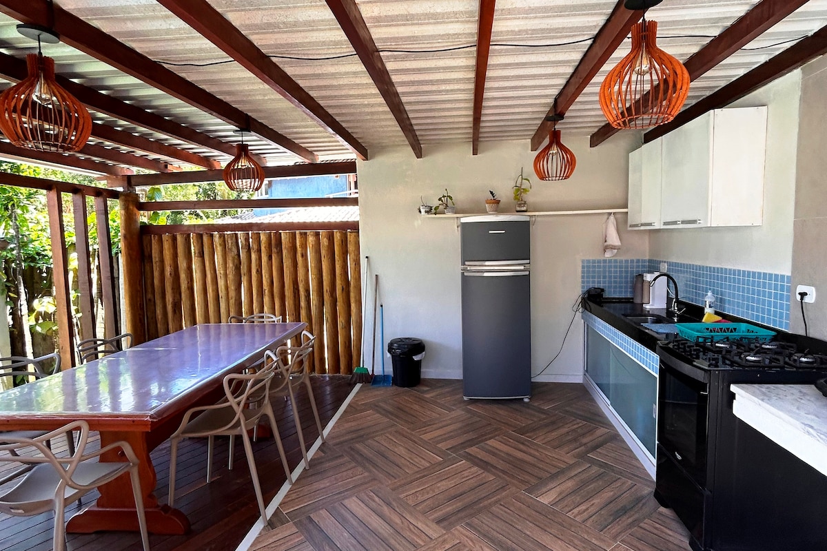 Installez-vous confortablement dans cette suite pendant votre séjour à arraial d'ajuda. Vous serez logé dans un quartier tranquille à 6 minutes à pied du centre-ville, et à 15 minutes à pied des plus belles plages. La cuisine du logement avec son ilot en granite est à l'extérieur de la chambre, alors vous serez charmez par les oiseaux pendant vos repas. Son jardin est partagé avec les locataires de la maison au fond du terrain.