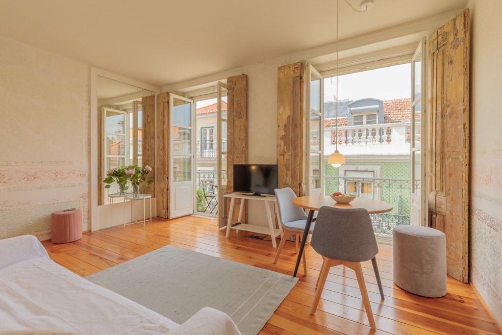 Stylish, spacious, and central studio apartment with: 🛌 Very comfortable king bed, luxury pillows and soft white linen 🚿 Spacious marble bathroom with quality towels and free toiletries ❄️ A/C 👗 Washer & dryer 🛗 Elevator 👨🏻🍳 Kitchen 📶 Wi-Fi 📺 Smart TV 🧼 Squeaky clean 🍷 Vibrant area with many restaurants, bars and cafes 📍 Walking distance to Chiado, Bairro Alto & Cais do Sodré 🚋 Directly on Tram 28 🛒 Supermarket is 1 minute away