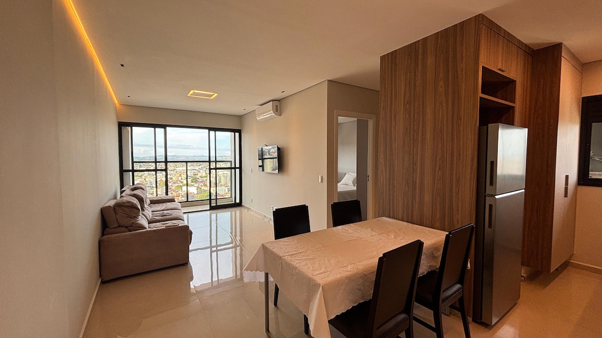 Welcome to the elegant DUBAI apartment in the Scenarium Residential complex, the best location in Pouso Alegre. This high-standard apartment was designed for couples, executives, and guests seeking comfort, sophistication, and beautifully decorated spaces. Every detail has been carefully chosen to provide you with a memorable experience! We have covered parking, an outdoor heated pool, a washer and dryer, a Smart TV, and a bedroom with air conditioning. Come and stay with us!