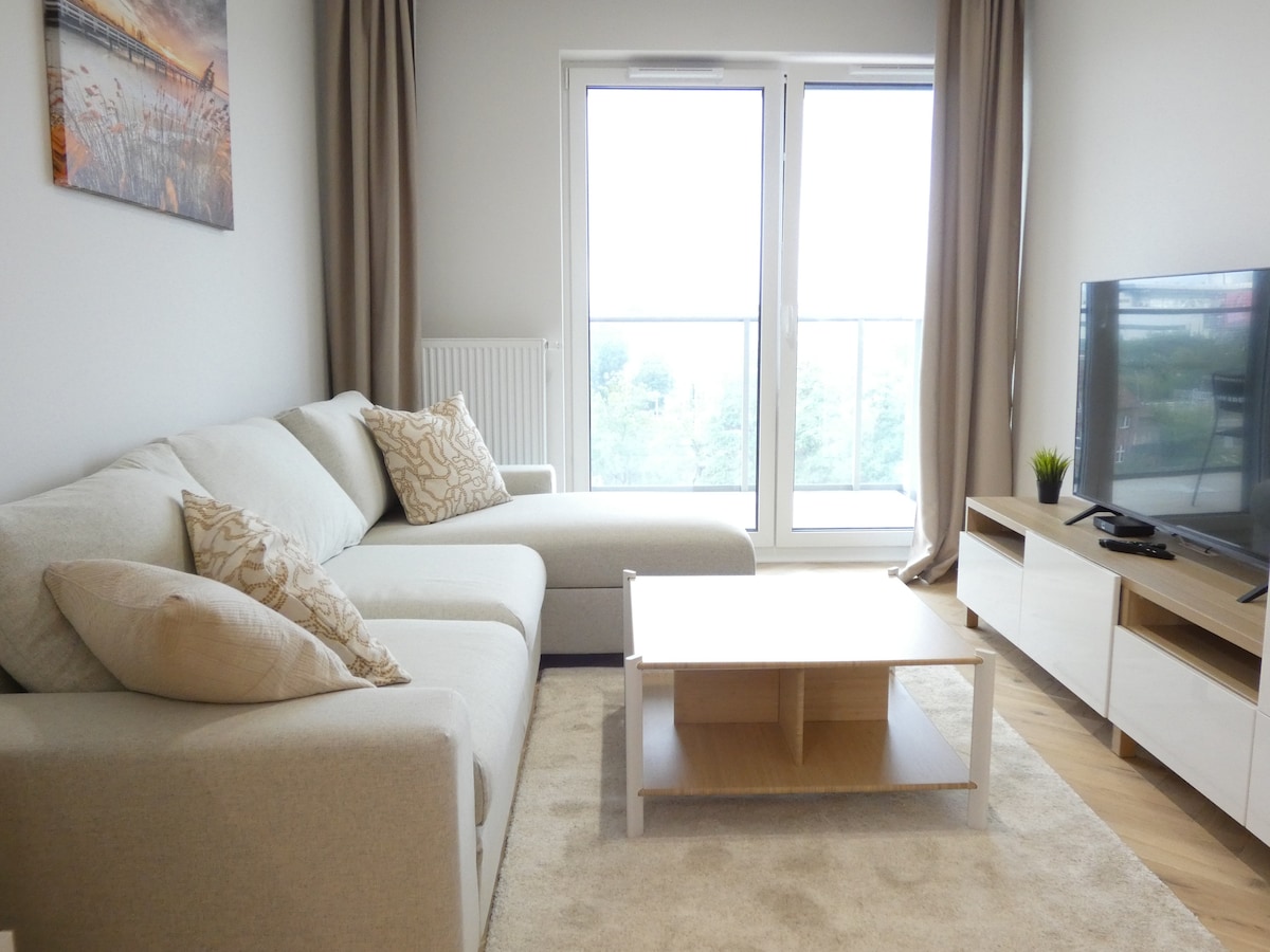 Beautiful, spacious apartment in a great location! 64 m2-character of a modern loft-style studio. Large kitchen connected to dining room, bedroom space, living room space, large bathroom. A fully equipped, pet-friendly space. 5 min. to Lake Malta and the Maltese Term, 10 min. to the New Zoo, 6 min. to tram 6 and 8, and by tram 8 to the center. Parking spot. Bike rental for free! Large balcony and garden.