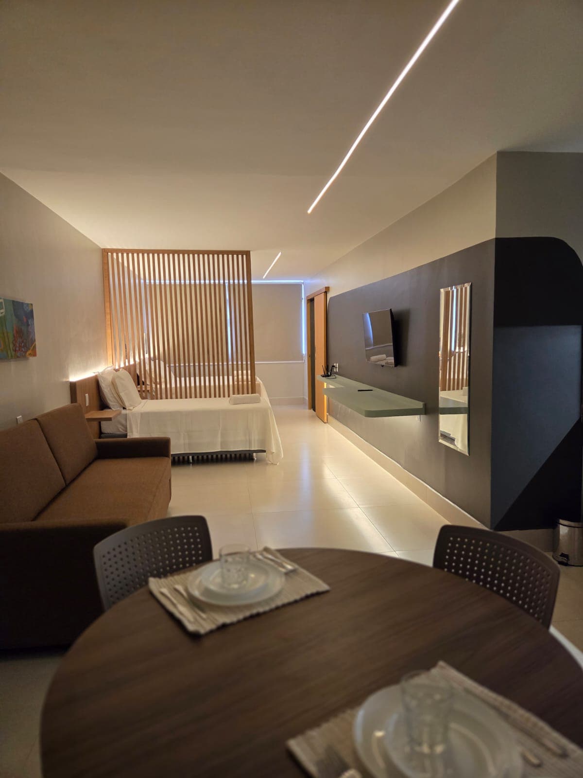 At Hospedegyn, you'll find the perfect balance between comfort and sophistication. Our prime location, just a few steps from the main tourist attractions, allows you to explore all that the city has to offer. Relax in our modern and cozy studio and enjoy our various leisure options. Whether for work or leisure, Hospedegyn is the ideal place for you. Come and meet us and discover a new concept of lodging! Kick back and relax in this calm, stylish space.