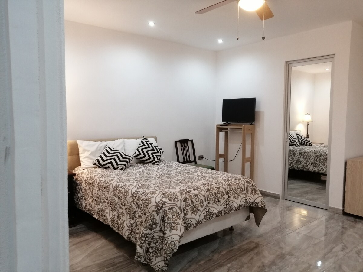 Fully independent studio with all the amenities + kitchen (A / C and heating, Internet, Netflix, refrigerator, micro, etc); in the area of Cumbres 5th sector close of two main commercial plazas (Plaza Cumbres and Park Point) to the west of down town; very close to the cardiology hospital IMSS, UVM and Tec Milenio Cumbres and Clinica 25 of the IMSS; with easy access to fast roads. A thousand food delivery options, Supermarkets