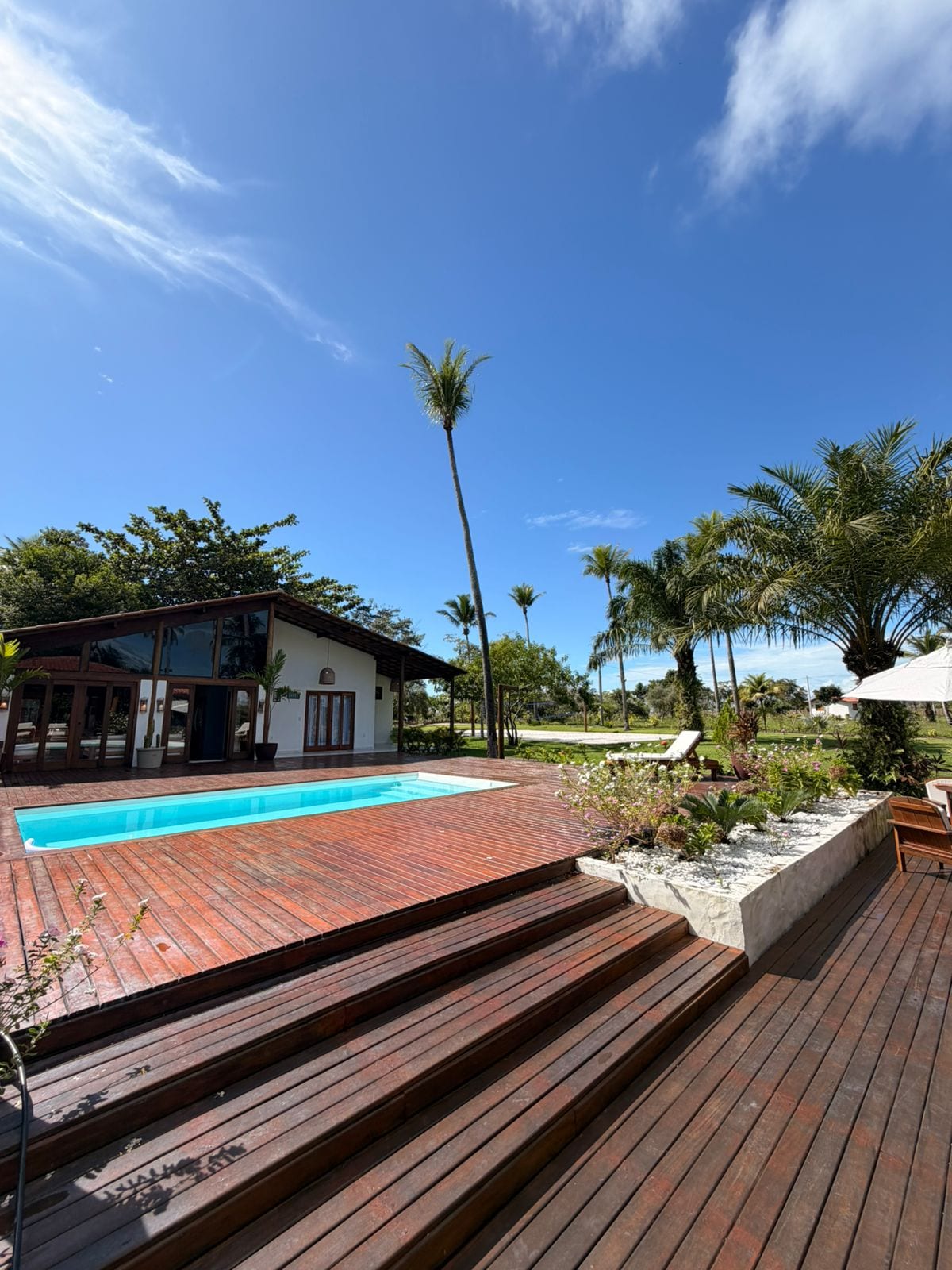 # Description House in Rio do Peixe, prime area of Cumuruxatiba. There are 4 en-suites with Smart TV and air-conditioning, accommodating up to 12 people. Housekeeping service included. The kitchen has a large countertop and is fully equipped with a refrigerator, freezer, microwave, blender, oven, pots, cutlery and pots. For everyone's enjoyment and comfort, the house is equipped with: - Pool - Heated hot tub for 5 people - Barbecue grill - Beer cooler