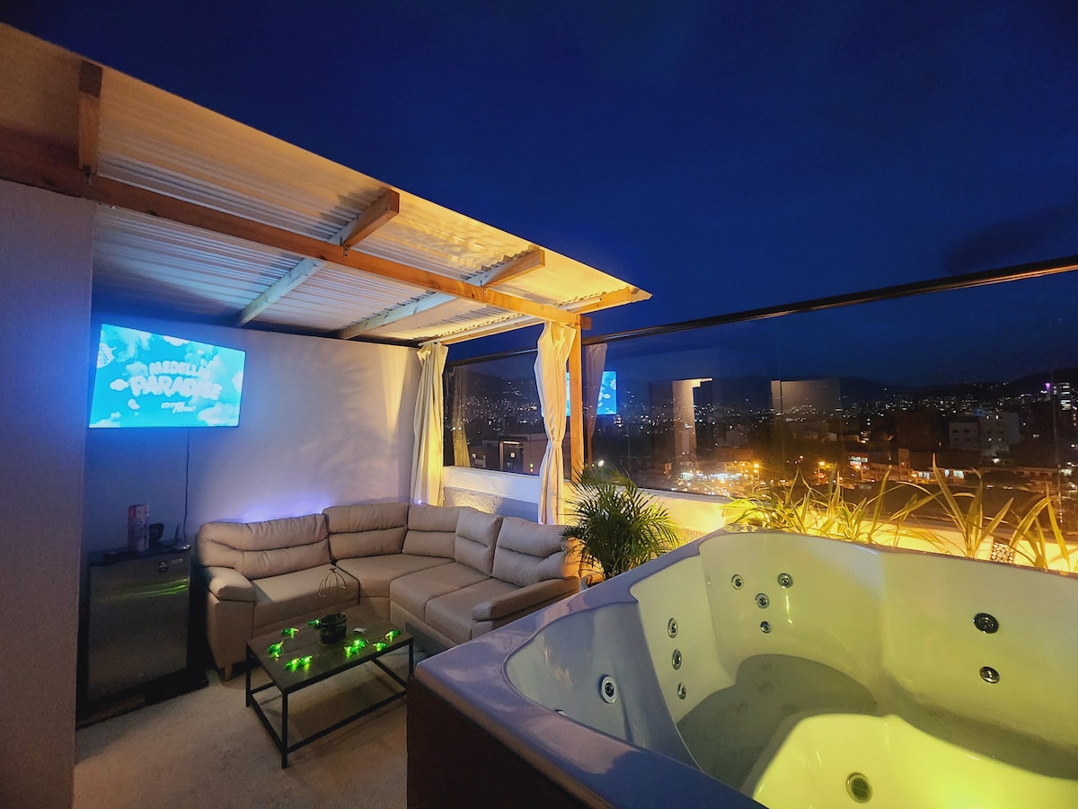 Rooftop Priv/Near Poblado/JacuzziAC/Guests Allowed