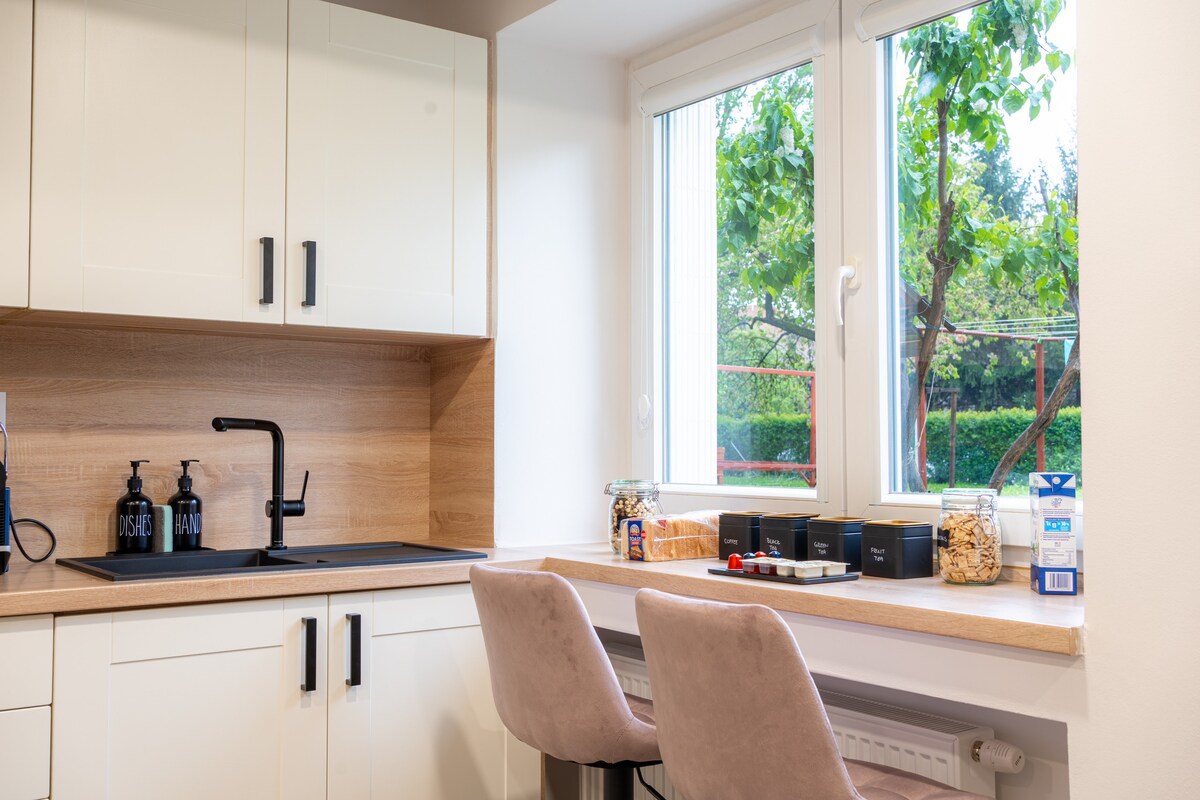 Welcome to your home in Prague. Dive into Prague's suburban experience in this warm, comfy and peaceful apartment. Located just minutes away from the magnificent Divoká Šárka park, you will enjoy a natural environment, pure air, and lots of spaces to relax after a long day's walk in the city. Close to the city but not smack in the middle of it, great public connections, a delightful culinary area close by and a beautiful space make this the place where you wanna be.