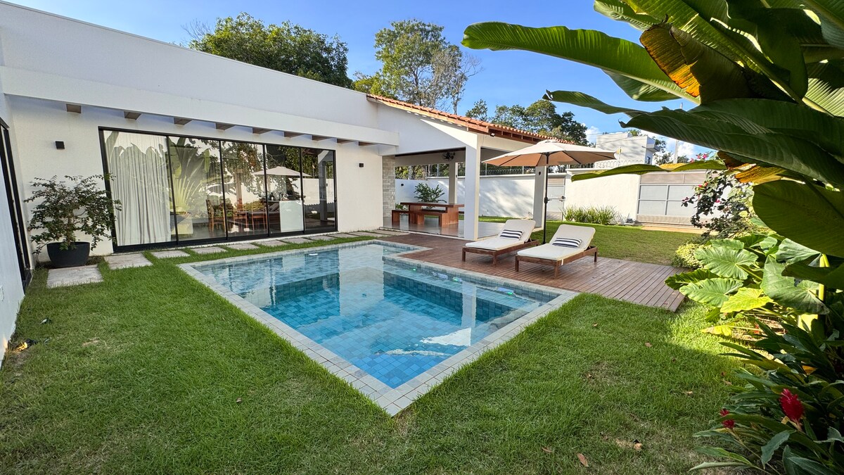 Relax in this quiet and comfortable accommodation, in a privileged location, enjoy the best of Alter do Chão with the comfort you deserve. 12 minutes (walking) from the beach, behind the sairodrome. Close to markets, restaurants and pharmacy. It has 2 en-suites with a double bed and a double bed, 1 bedroom with a double bed, a hammock and extra mattresses. It has an air-conditioned living room and kitchen, equipped with the best, a modern gourmet area, fully functional with bathroom and toilet