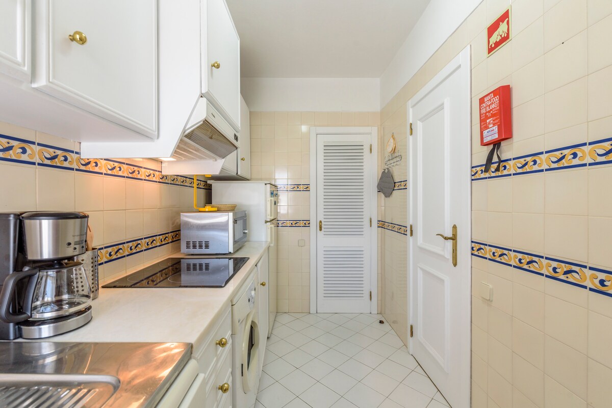 Beautiful and relaxing garden view apartment in a private condominium. Fully equipped, 65" SmartTV, Cable TV, Wi-Fi, outdoor Swimming pool, tennis court and private parking. 5 minutes away on foot to the beach, or to the Oura strip. 15-20 minutes walk by the beach to old downtown Albufeira.