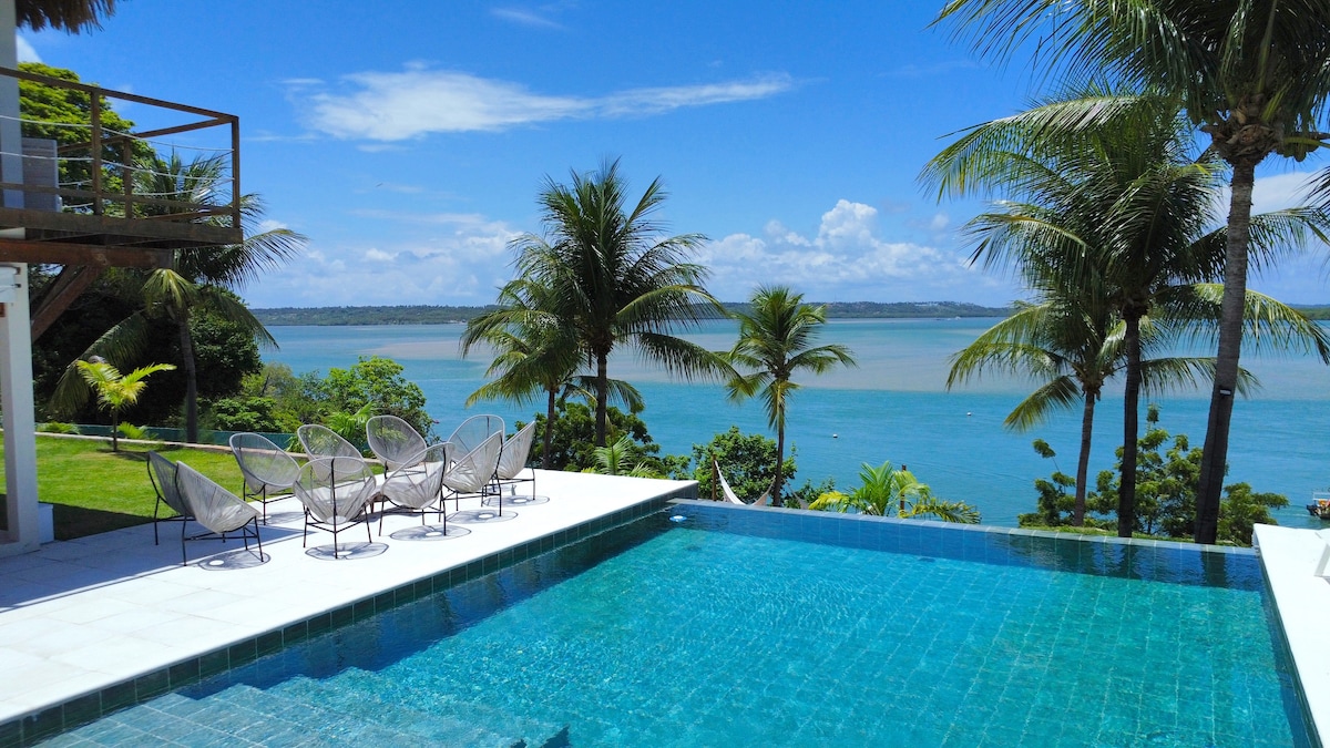 Villa Temalou includes 8 suites (sleeps 18) with infinity pool and stunning views of Tibau do Sul Lagoon. Modern and neat decoration, fully equipped (kitchen, air conditioning, Wi-Fi). Ideal for families or groups of friends, with caretaker and service at your request for the duration of your stay.(Breakfast, meals...). Prime location, close to the beaches and center of Tibau do Sul. A unique setting for an unforgettable vacation.