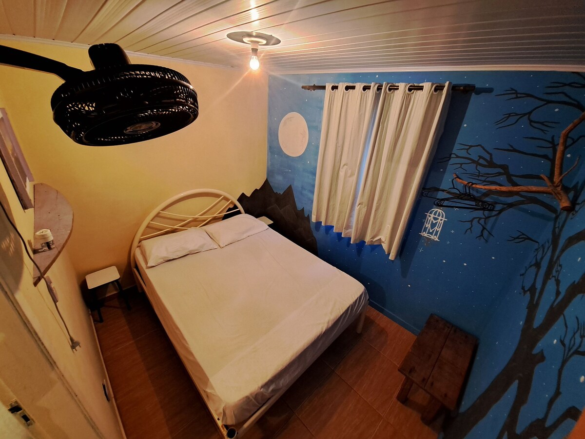 Cabana Sand was entirely handmade, conceived and built by those who love the sea and simplicity. Here you will find immersion bathtubs with hot water, air-conditioning, TV, etc. The kitchen is equipped with all the necessary utensils to make you feel at home. The charm is due to the sea-themed decoration, paintings by Curitiban artists and a 70s record player that will take you back in time! The chalet is two blocks from the beach, 5 minutes from the boarding for Ilha do Mel.