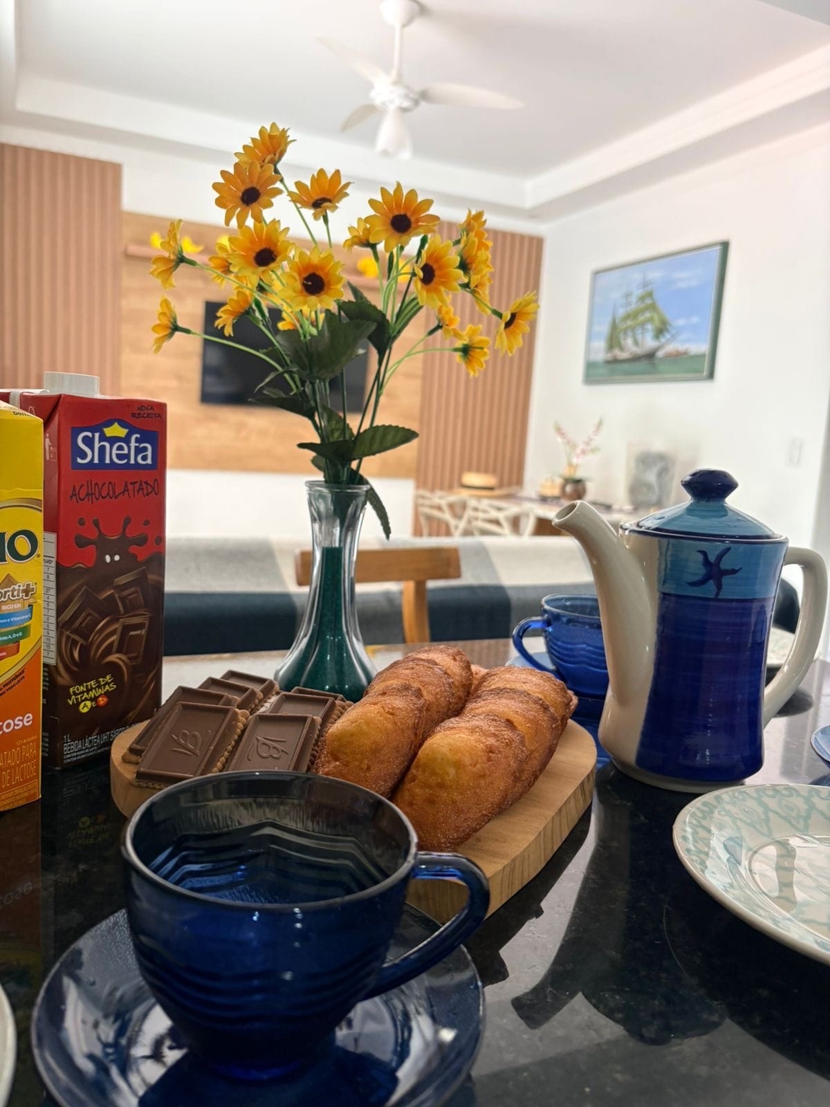 Beautiful apartment with 2 bedrooms (1 en-suite), air-conditioning in each bedroom, TV in the living room and en-suite; Wi-Fi, full kitchen; washer and dryer. All rooms in the apartment have a wide view of the sea (living room, laundry room, kitchen and the two bedrooms). 110 and 220 energy; Building has swimming pools, saunas (dry and wet), Jacuzzi, game room, toy library, playground, fitness center, beach service (chairs and umbrella), and simple daily cleaning in the apartment, already included. 1 parking space.