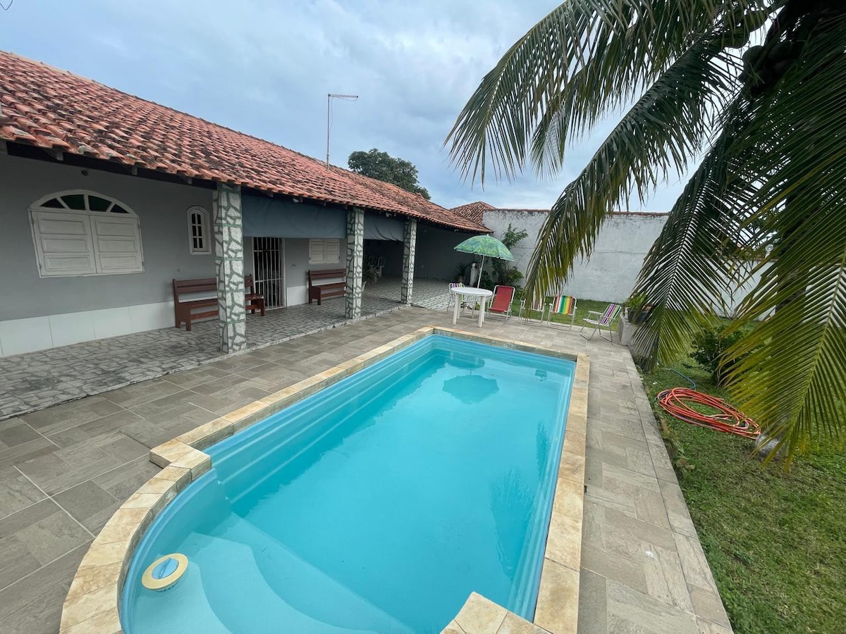 Relax with the family in this quiet accommodation, perfect for groups of up to 8 people and/or families with children. With a swimming pool, playground, barbecue, soccer goal, ping-pong table and foosball, there is no shortage of entertainment options. Your pet is also welcome. We include bed linens and pillows for your convenience. Distances: Jacarepiá Lagoon: 3.5 km Vilatur Beach: 5.9 km Saquarema Center: 10.9 km Praia Seca Lagoon: 16.8 km Itaúna Beach: 11.4 km @aluguelsaquarema