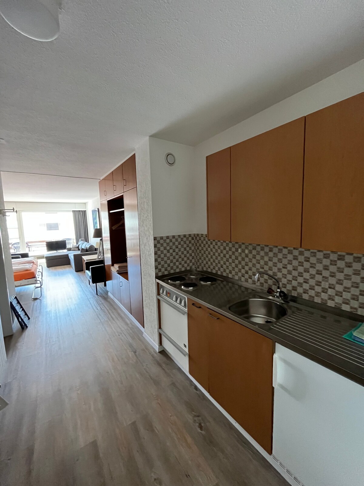 Arlette 14 Parkstr. 5 , Davos-Platz 1½-room apartment. No. 14, floor 3, for 1-4 people, approx. 33m², NON-SMOKING, south/west balcony. Parking available in garage, living room with two closet beds and extended with upholstery group, this results in a sofa bed for another 2 people, flat screen TV, open kitchen with dining table, fridge with freezer compartment, stove with oven. Swimming pool & Sauna in House Baby cot on request Quiet and centrally located , walking distance to the train station and valley station Jakobshorn.