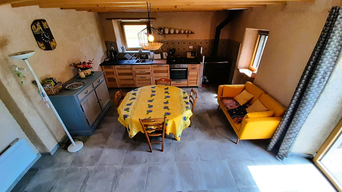 If you are looking for a place away from it all, in the heart of nature, the Gîte la Parenthèse is for you. This stone-walled building perched at 1300 m altitude will seduce you with its calm and its view of the Monts d'Ardèche plateau. This 50 m2 accommodation adjoining our main house and another cottage is totally private and independent. Finally, its wood-burning stove will warm you in winter, while its altitude and large stone walls will cool you during heat waves.